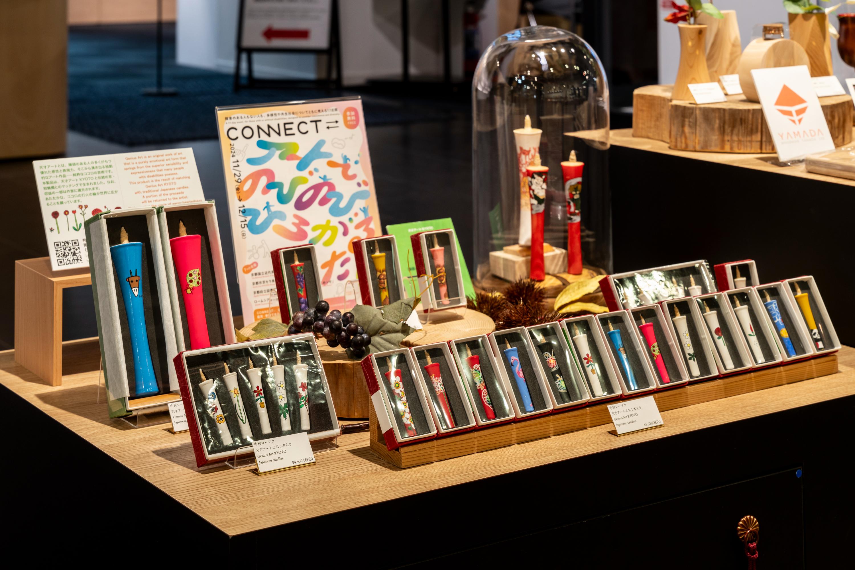 日程 ①12月14日(日)11:00~12:30、②12月14日(日)14:30~16:00 会場 京都国立近代美術館 1階講堂 昨年度の開催風景 CONNECT⇄_に参加する4つの会場のショップに、グッズや書籍など、障害のある方の表現に関わる商品を集めた特設コーナーを開設します。選りすぐりの品をお楽しみください。