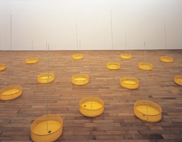 河口龍夫《関係-種子・向光性》1999年、京都市美術館蔵 全盲の美術家・光島貴之と、「関係」をテーマに制作を続ける美術家・河口龍夫が、互いの作品を鑑賞する様子を記録した映像を展示します。